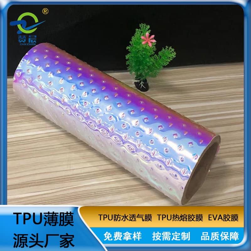 TPU彩虹膜的神奇效果在于不同距離、不同角度彩虹膜基材本身豐富的光效應會呈現出完全不同的幻彩效果。