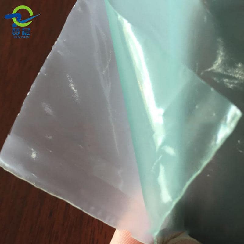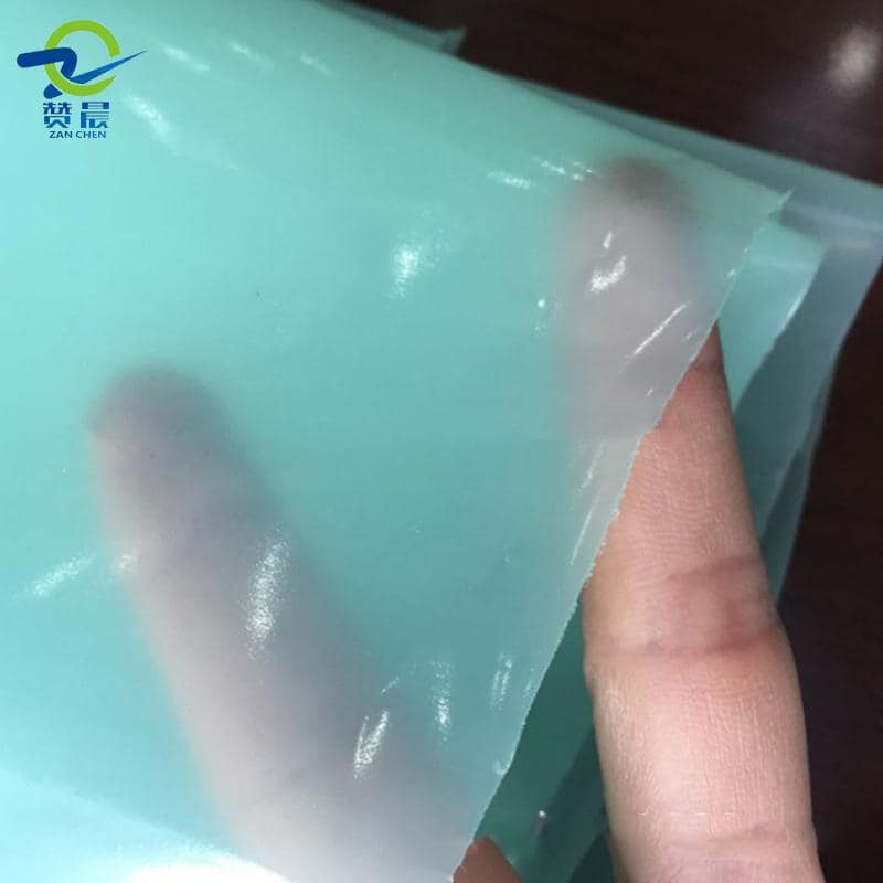 膠膜+PE(綠色),表面為霧面,熱貼合后為透明狀態。